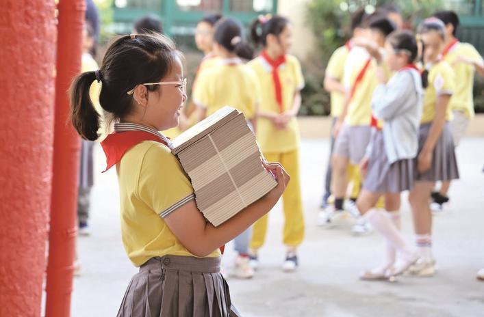 9月1日,通师二附,一名学生领取教辅书本。徐培钦 摄