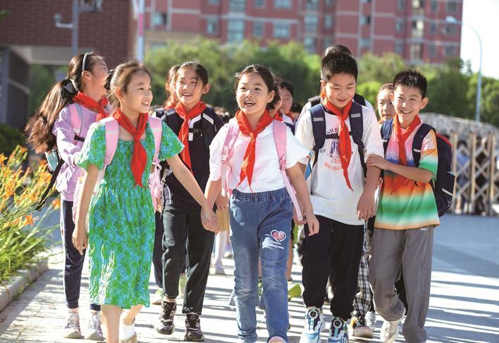 9月1日,海安高新区实验小学的学生们开心地到校报到。 翟慧勇 顾春芹 摄
