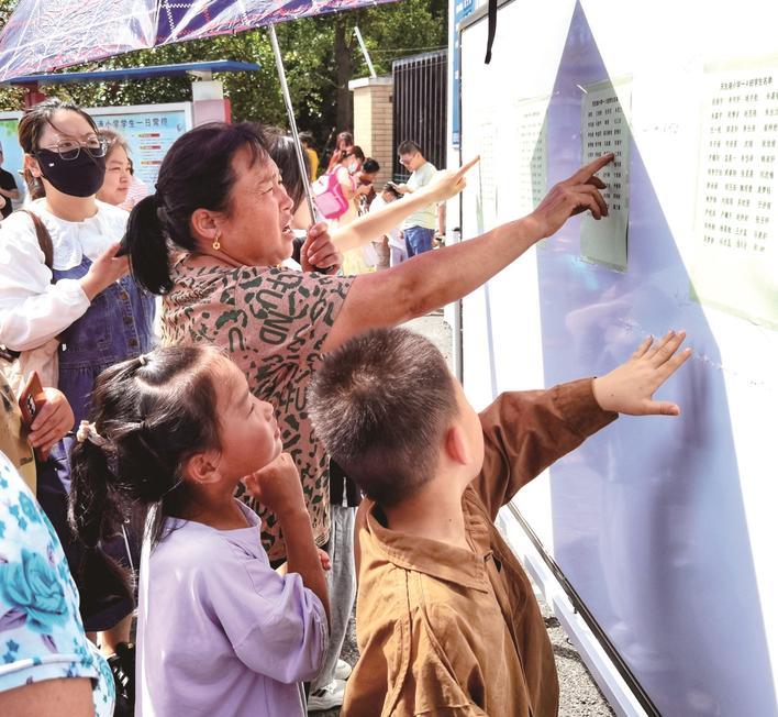 9月1日,天生港小学,一年级学生家长在看新生分班名单。王德泉 摄