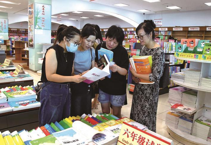 8月28日,南通高等师范学校附属小学各年级老师组团在南通书城选购教辅资料,备战新学期。李斌 摄