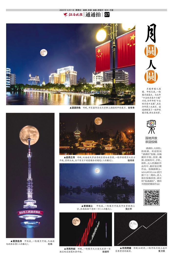 通通拍,大家拍、拍南通。欢迎您向“通通拍”投 稿,来稿题材不限,美图、趣图、囧图均可,手机、相机、 无人机摄影作品均可,最好是近期作品。投稿邮箱 jhwbttp@163.com或扫描下方二维码,进入报社投稿 系统,请注明“投通通拍”。期待刊登您的精彩作品!