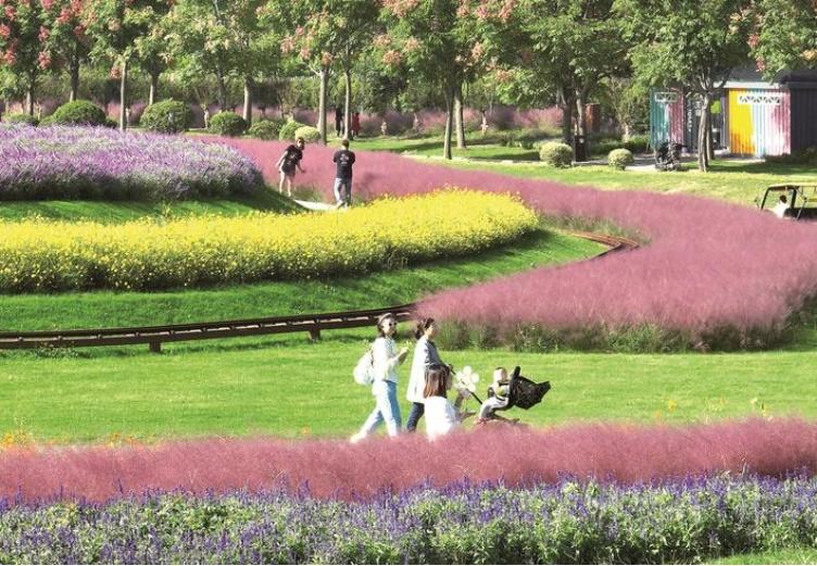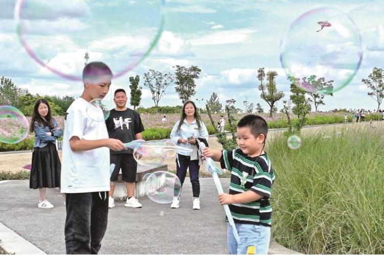 10月2日,市民在市区滨江花海乐享假日时光。李斌