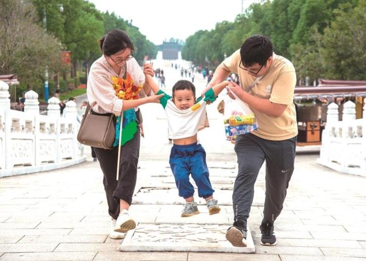 9月29日,一家三口在南通狼山国家森林公园玩耍。黄平华
