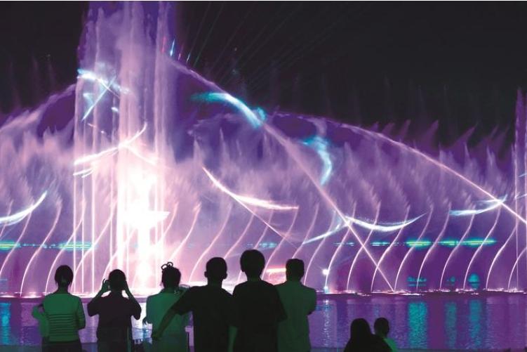 9月29日,通州区五接镇洲际梦幻岛全新灯光秀亮灯,吸引游客观赏。霜雅杉