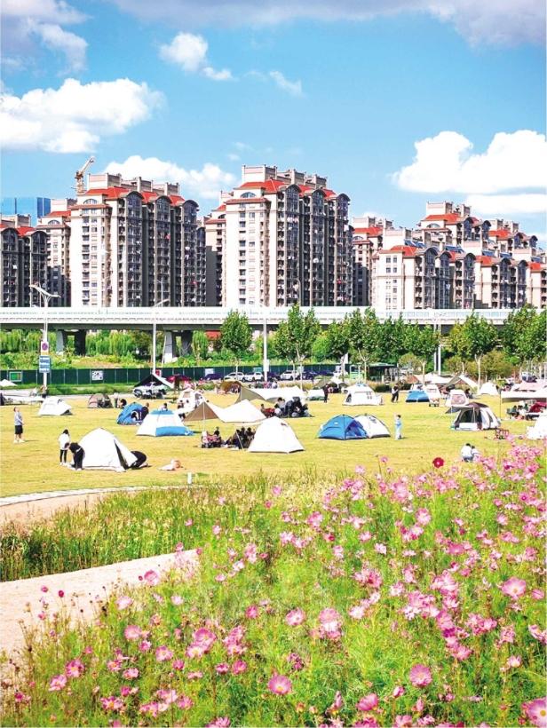 10月4日,市区滨江花海露营地,市民在这里休闲娱乐,亲近大自然。 瞿德均