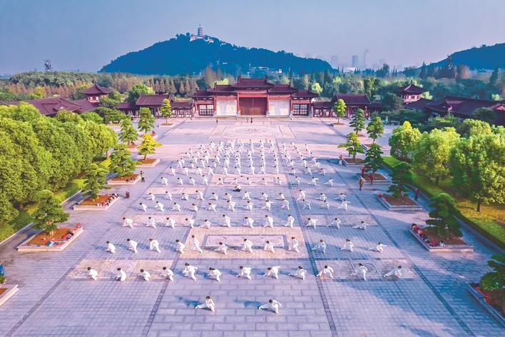 十月十五日,崇川区狼山镇街道举行“迎重阳、全民健身、你我同行”主题活动。老人们在狼山脚下列阵起“武”。 黄平华