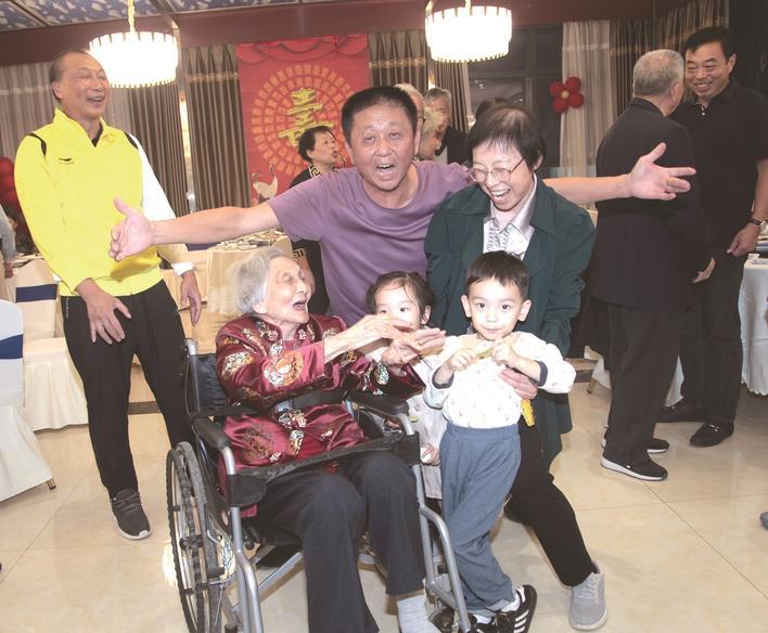 10月22日,如东县马塘镇市河社区的一家人为百岁老人庆生。范锦华