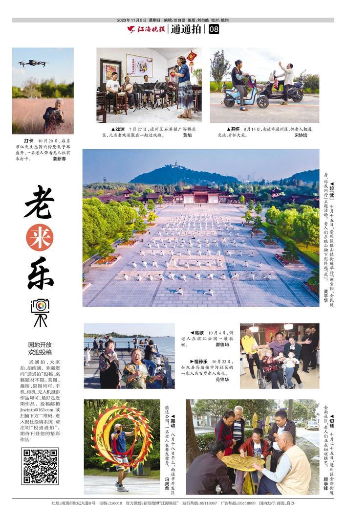 通通拍,大家拍、拍南通。欢迎您向“通通拍”投 稿,来稿题材不限,美图、趣图、囧图均可,手机、相机、 无人机摄影作品均可,最好是近期作品。投稿邮箱 jhwbttp@163.com或扫描下方二维码,进入报社投稿 系统,请注明“投通通拍”。期待刊登您的精彩作品!