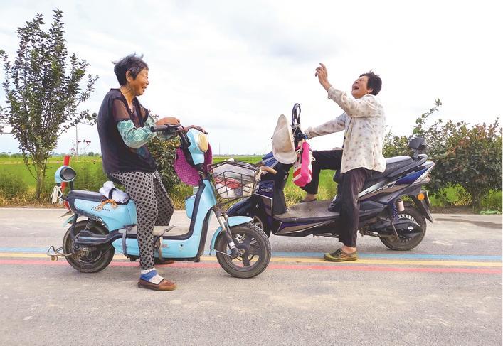 8月14日,南通市通州区,俩老人相遇交谈,开怀大笑。 宋协培