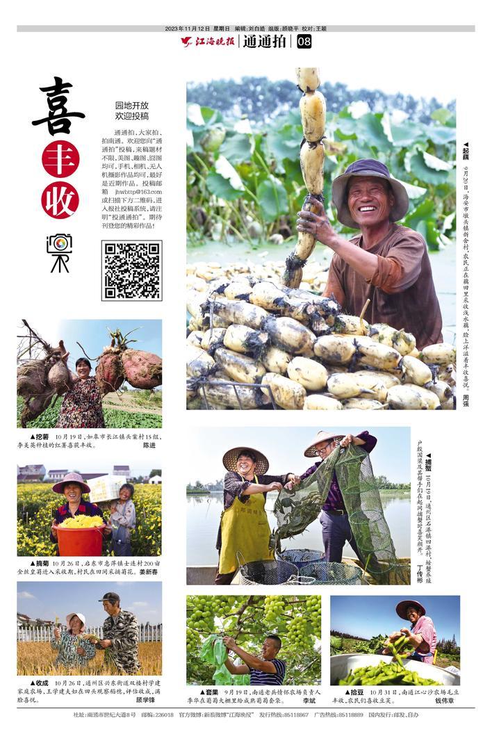 通通拍,大家拍、拍南通。欢迎您向“通通拍”投稿,来稿题材不限,美图、趣图、囧图均可,手机、相机、无人机摄影作品均可,最好是近期作品。投稿邮箱jhwbttp@163.com或扫描下方二维码,进入报社投稿系统,请注明“投通通拍”。期待刊登您的精彩作品!