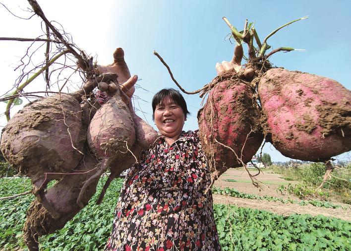 10月19日,如皋市长江镇头案村15组,李美英种植的红薯喜获丰收。 陈进
