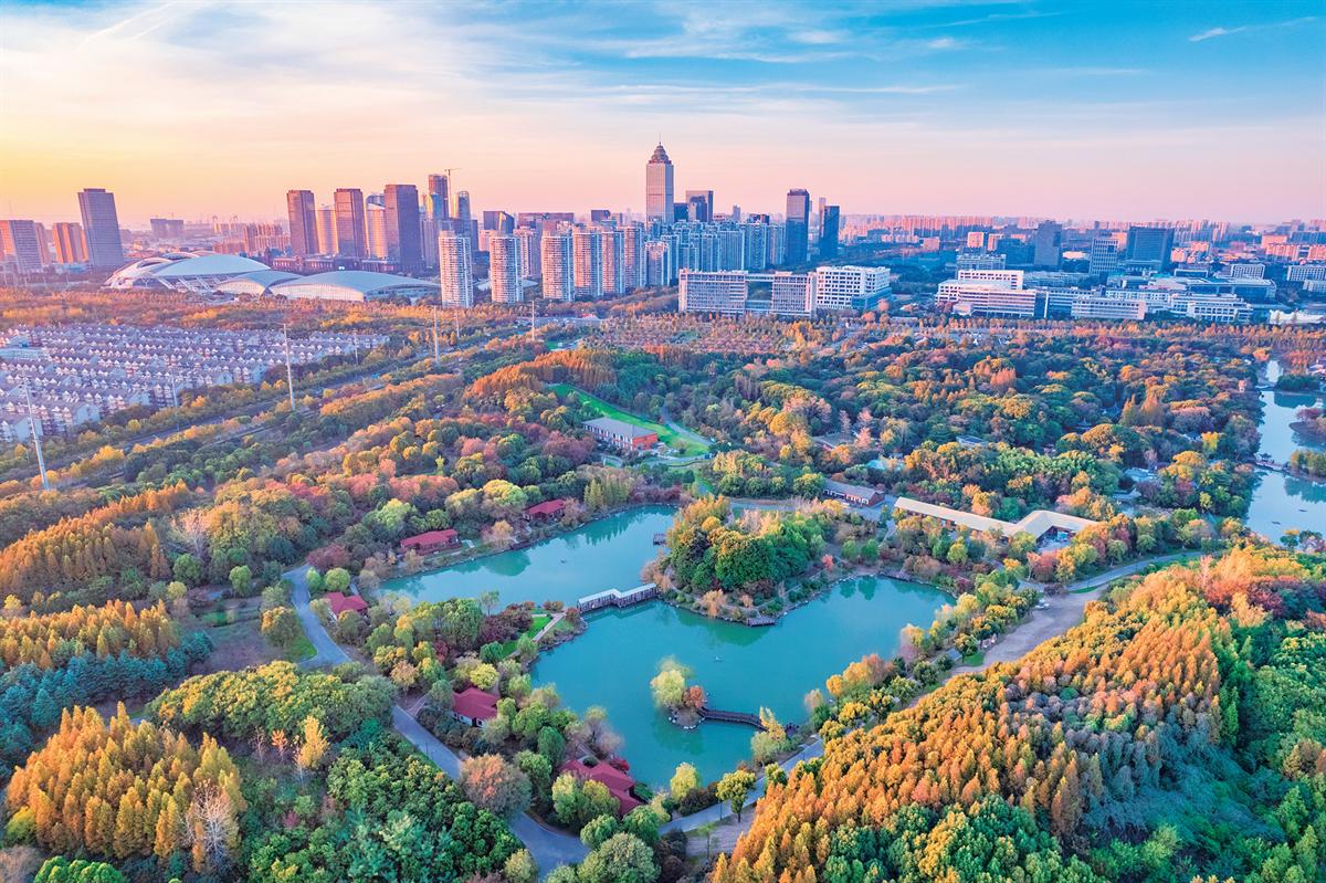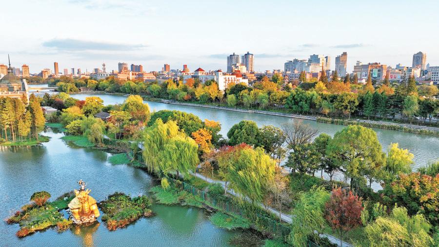 11月15日,南通军山绿野内的珞珈湖景美如画。 姚国泉