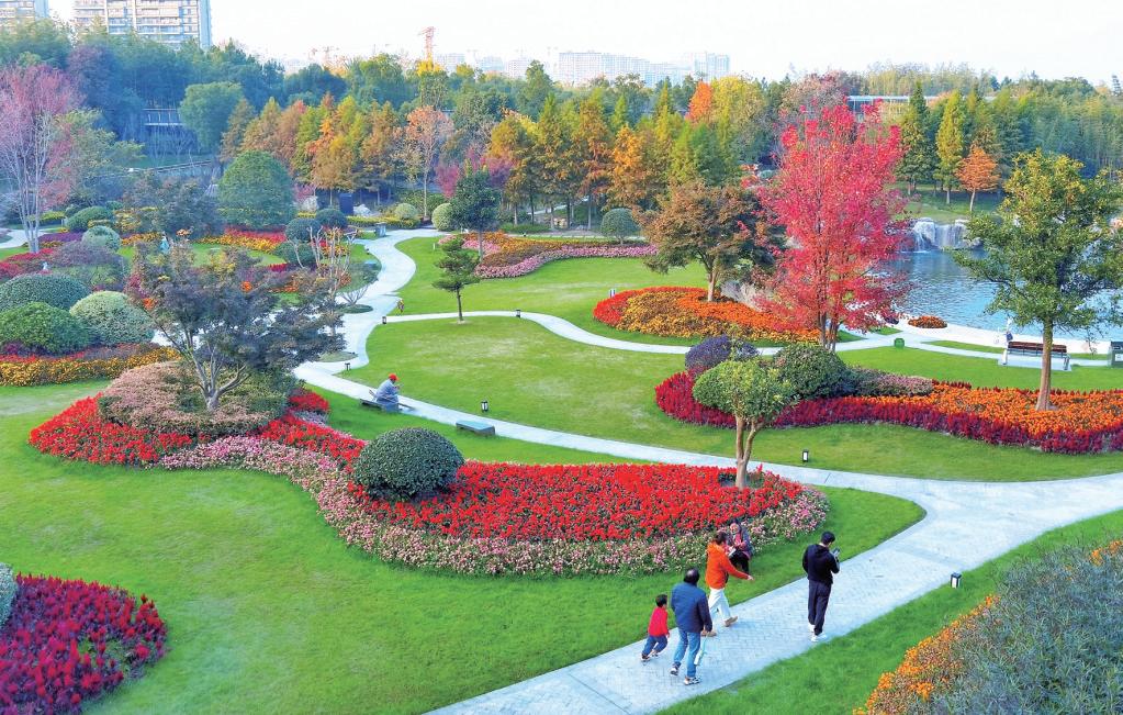 11月20日,南通创新区紫琅花谷内,游人在此漫步。 王德泉