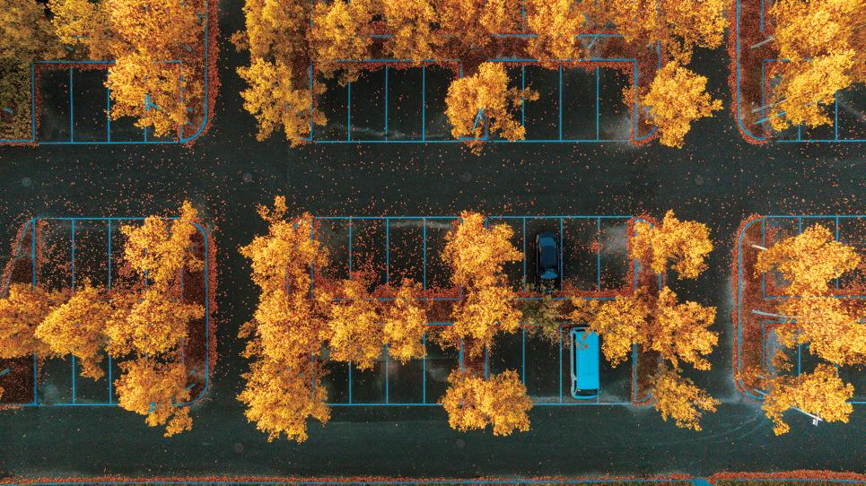 11月9日,南通植物园内的停车场,金色落叶铺满道路。范鎧毓