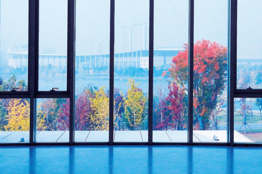 十一月二十三日,紫琅湖景透过南通美术馆的幕墙映入室内。 顾春雷