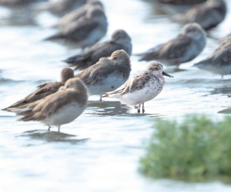9月2日,通州湾,一只勺嘴鹬姿态独特,混迹在群鹬中。葛锦平