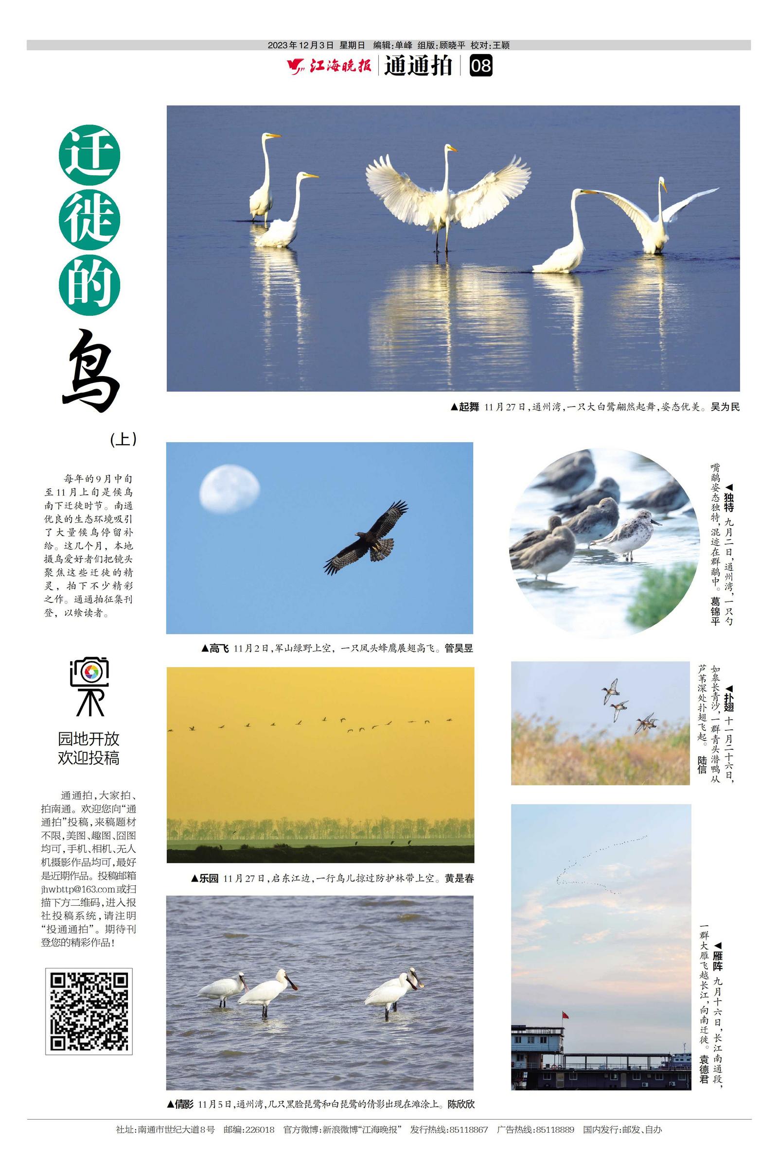 通通拍,大家拍、拍南通。欢迎您向“通通拍”投稿,来稿题材不限,美图、趣图、囧图均可,手机、相机、无人机摄影作品均可,最好是近期作品。投稿邮箱jhwbttp@163.com或扫描下方二维码,进入报社投稿系统,请注明“投通通拍”。期待刊登您的精彩作品!