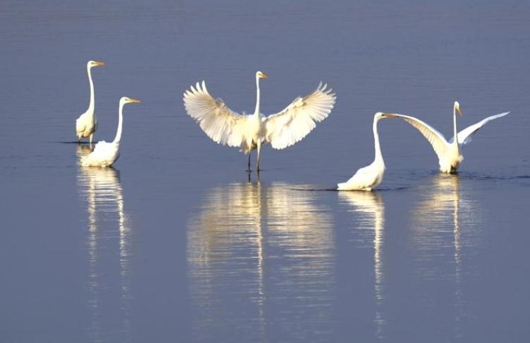 11月27日,通州湾,一只大白鹭翩然起舞,姿态优美。吴为民