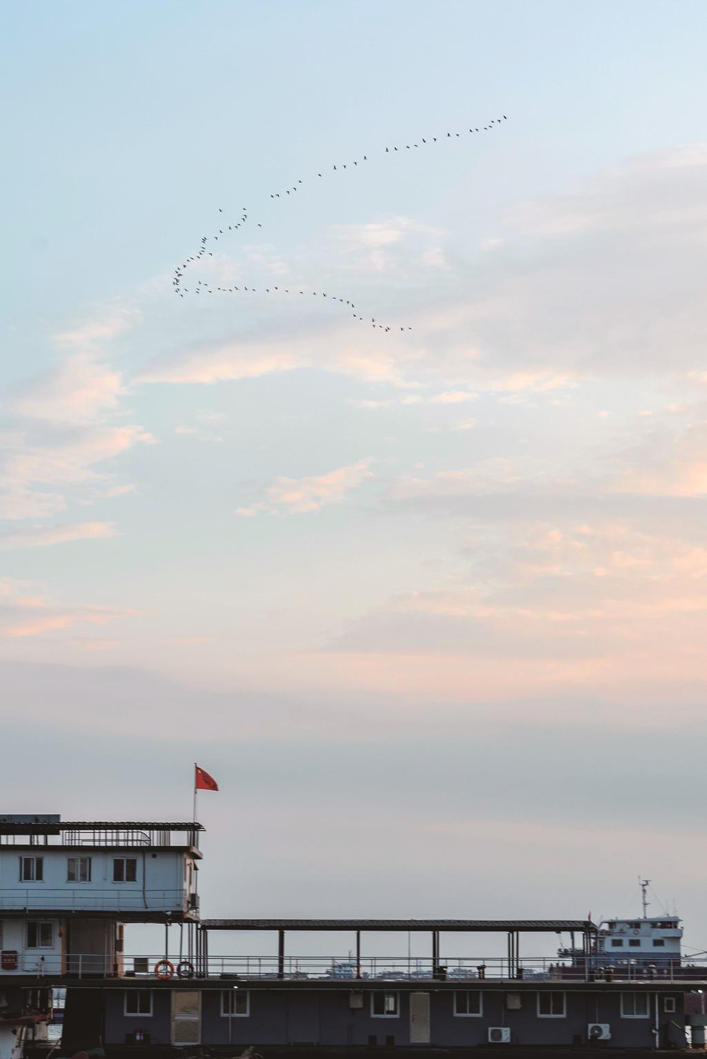 9月16日,长江南通段,一群大雁飞越长江,向南迁徙。袁德君