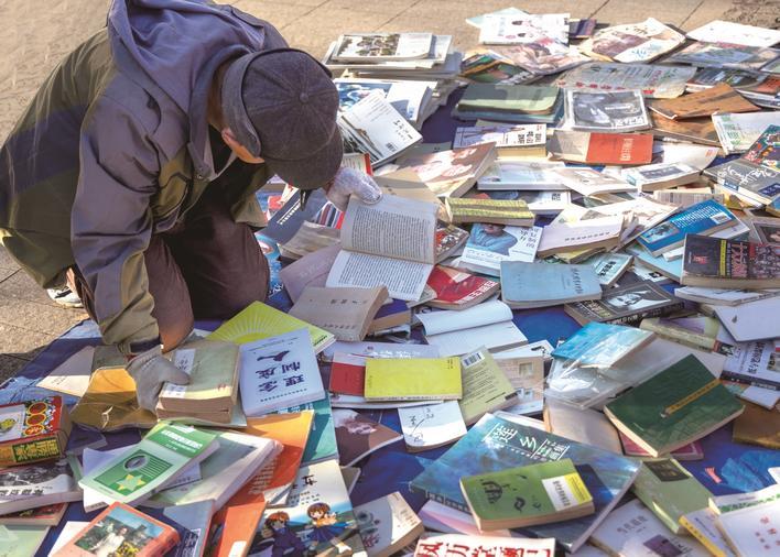 12月24日晨,市区濠东绿地旧书市场,一老者在看书。 黄旭
