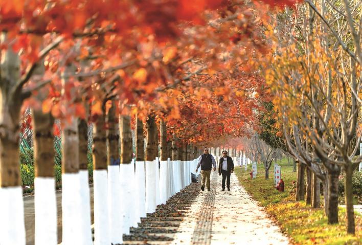 12月7日,南通经济技术开发区星湖大道新开北路至长天路,道路旁树木斑斓如画。 冯周鼎