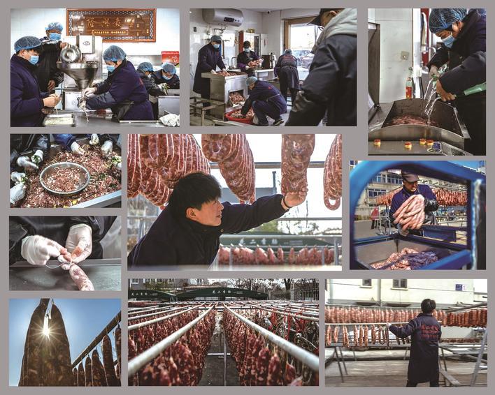 12月24日,唐闸花园二村,一家香肠加工厂里工人加紧生产。 蒋跃丽