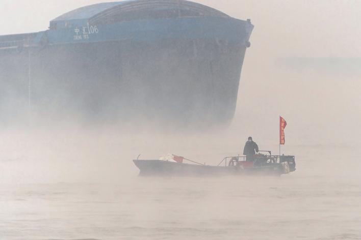 12月18日,长江南通滨江段,风雪中的护渔人。管昊昱