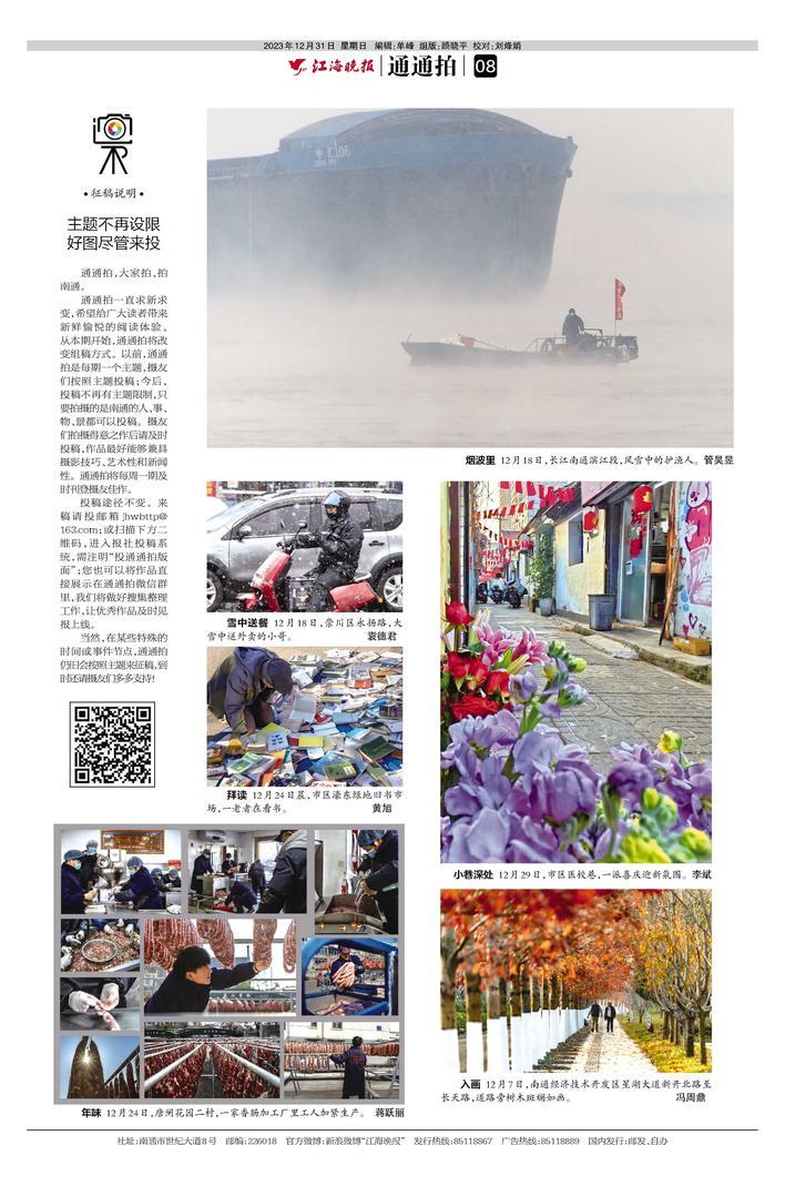 通通拍一直求新求变,希望给广大读者带来新鲜愉悦的阅读体验。从本期开始,通通拍将改变组稿方式。以前,通通拍是每期一个主题,摄友们按照主题投稿;今后,投稿不再有主题限制,只要拍摄的是南通的人、事、物、景都可以投稿。摄友们拍摄得意之作后请及时投稿,作品最好能够兼具摄影技巧、艺术性和新闻性。通通拍将每周一期及时刊登摄友佳作。