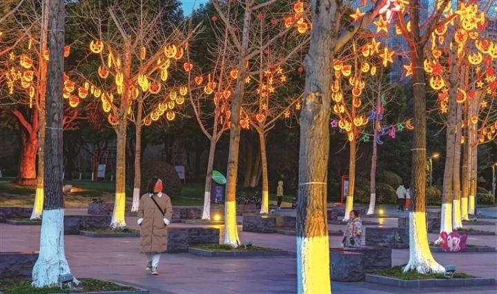 1月7日晚,市经开区能达公园,银杏林装点着各式好看的灯饰,迎接新春。 冯周鼎