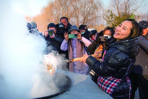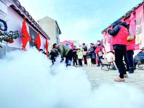 1月27日,海门区余东镇,家长们带着孩子体验非遗年俗文化,感受别样年味儿。施敏
