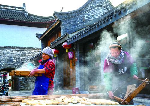 1月27日,海门区余东古镇,一家馒头店的工人忙得不亦乐乎。施宏慧