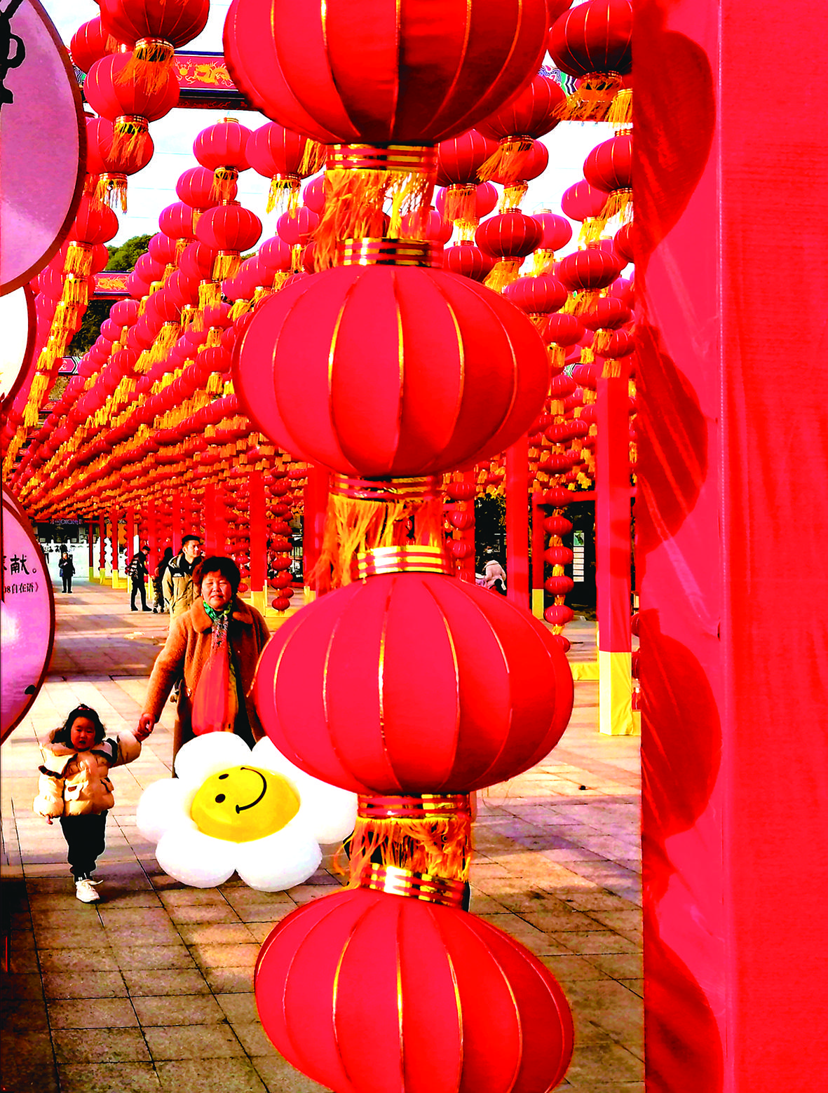 2月17日,游客在南通狼山森林国家公园赏灯游玩。 谢静玲