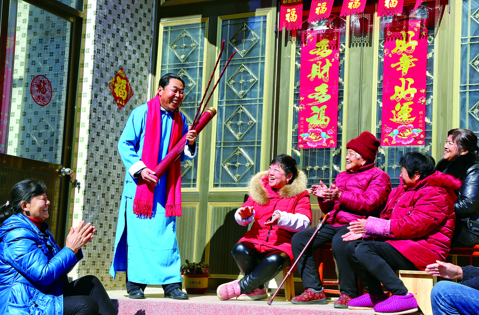 2月16日,海安市墩头镇墩头村,党员志愿者表演“水乡道情”节目。周强