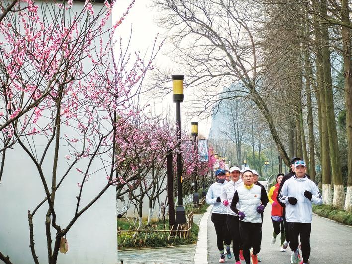 2日,狼山国家森林公园,跑步爱好者们相约慢跑,感受初春气息。瞿德均 摄