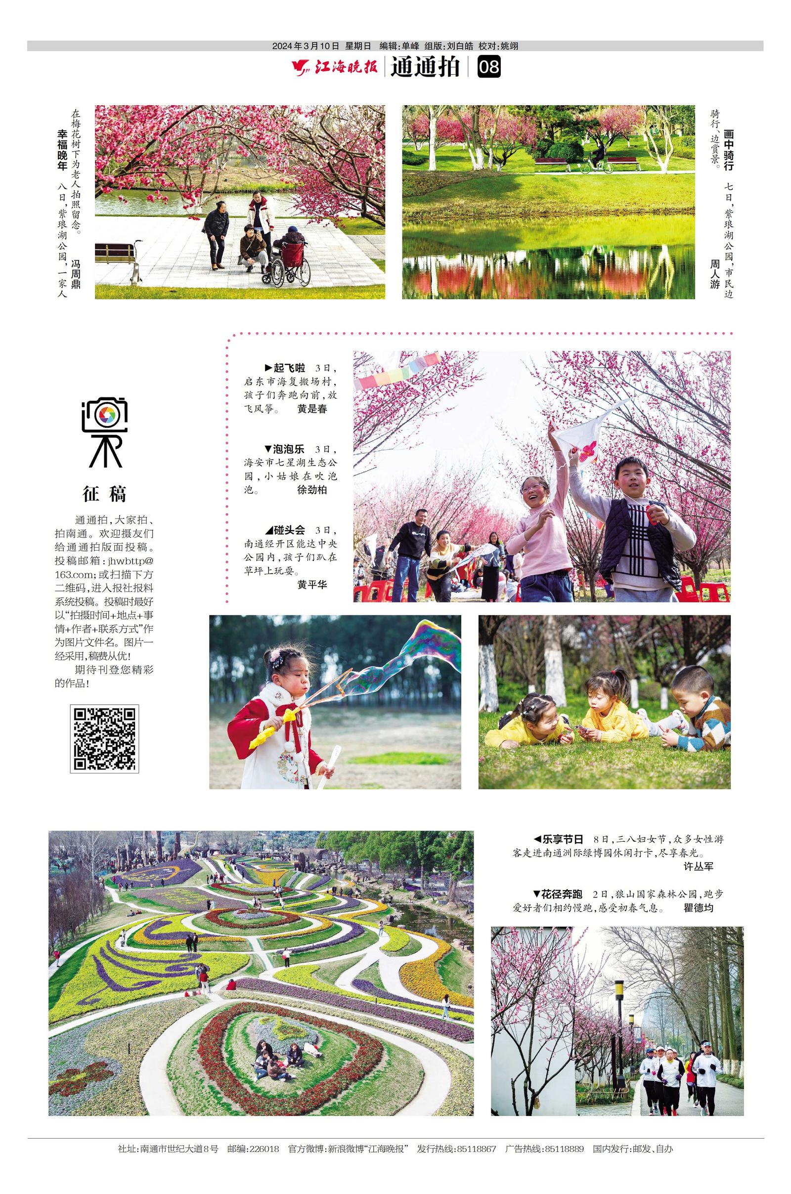 通通拍,大家拍、拍南通。欢迎摄友们给通通拍版面投稿。投稿邮箱:jhwbttp@163.com;或扫描下方二维码,进入报社报料系统投稿。投稿时最好以“拍摄时间+地点+事情+作者+联系方式”作为图片文件名。图片一经采用,稿费从优!期待刊登您精彩的作品!
