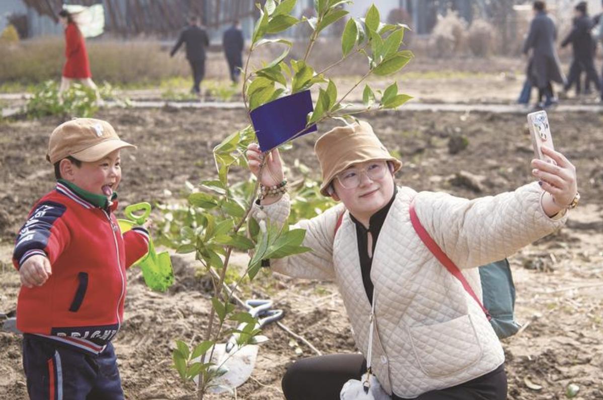 12日,市区沿河桥幼儿园的小朋友在南通都市农业公园参加植树节活动。黄平华 摄