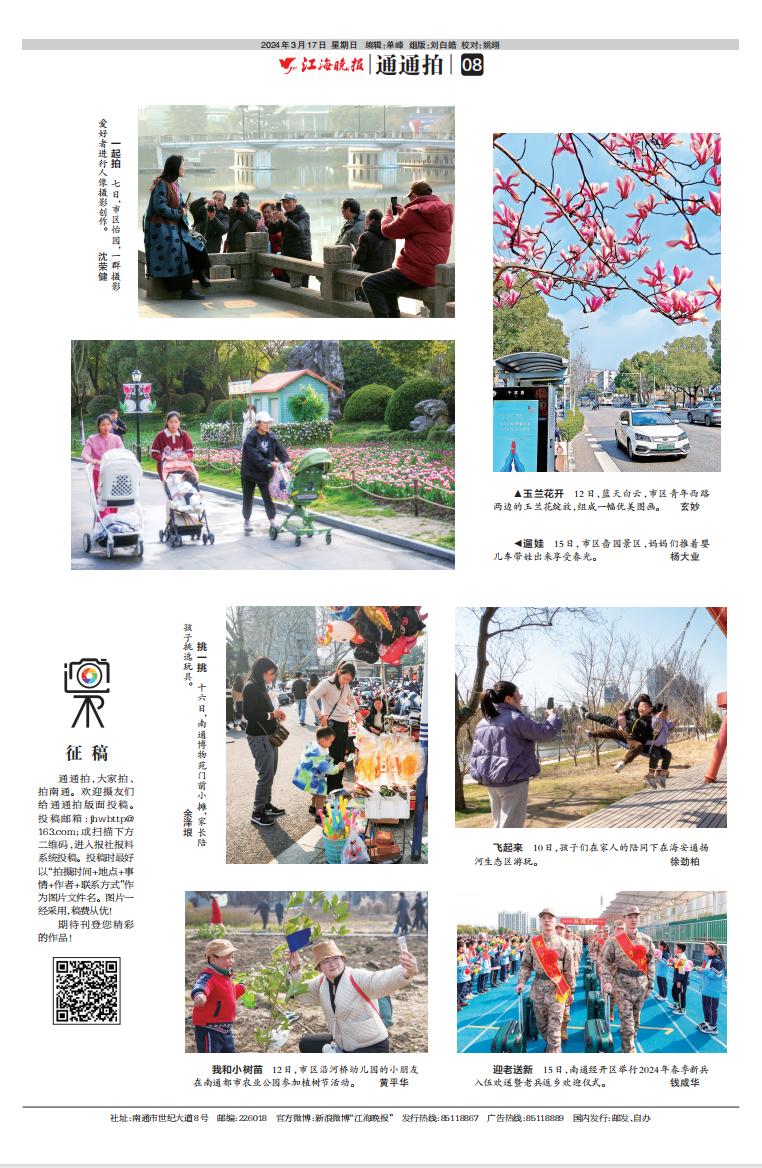 通通拍,大家拍、拍南通。欢迎摄友们给通通拍版面投稿。投稿邮箱:jhwbttp@163.com;或扫描下方二维码,进入报社报料系统投稿。投稿时最好以“拍摄时间+地点+事情+作者+联系方式”作为图片文件名。图片一经采用,稿费从优!