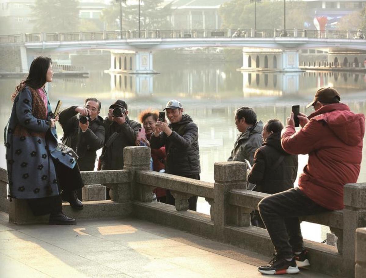七日,市区怡园,一群摄影爱好者进行人像摄影创作。沈荣健 摄