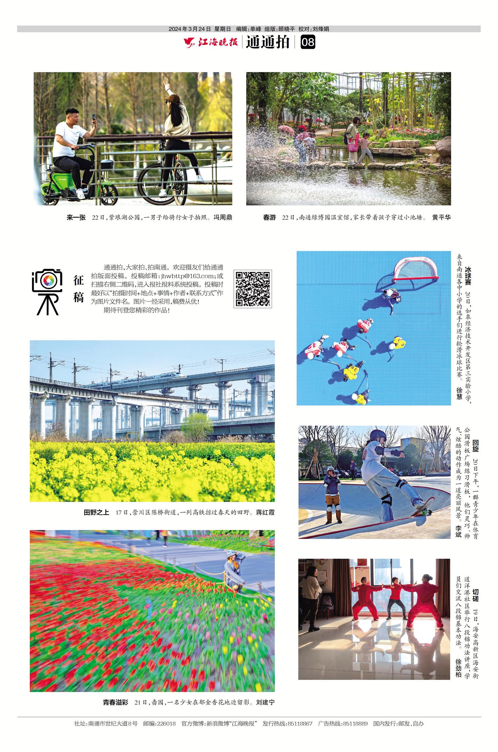 通通拍,大家拍、拍南通。欢迎摄友们给通通拍版面投稿。投稿邮箱:jhwbttp@163.com;或扫描下方二维码,进入报社报料系统投稿。投稿时最好以“拍摄时间+地点+事情+作者+联系方式”作为图片文件名。图片一经采用,稿费从优!