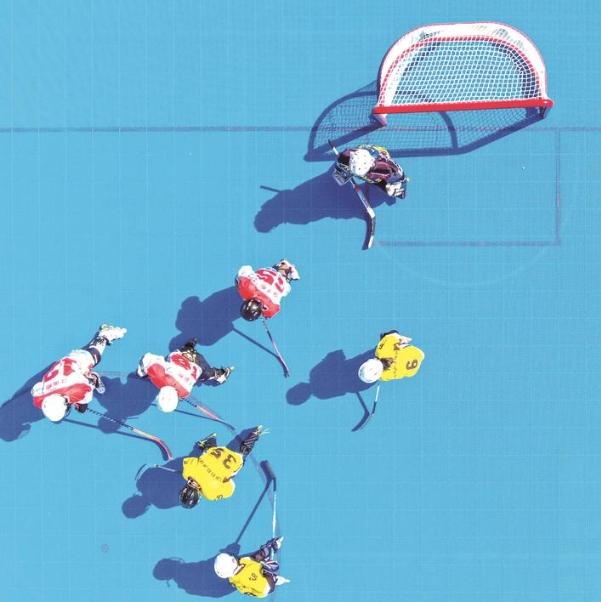 20日,如皋经济技术开发区第三实验小学,来自南通各中小学的选手们进行轮滑冰球比赛。 徐慧
