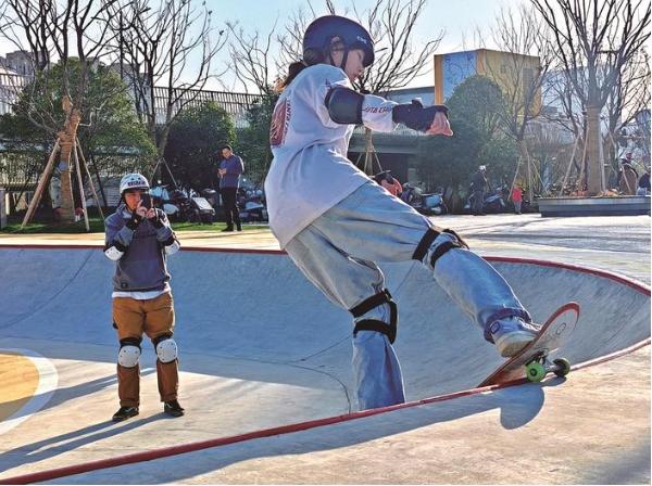 20日下午,一群青少年在体育公园滑板广场练习滑板, 他们灵巧、帅气、炫酷的动作成为一道亮丽风景。李斌