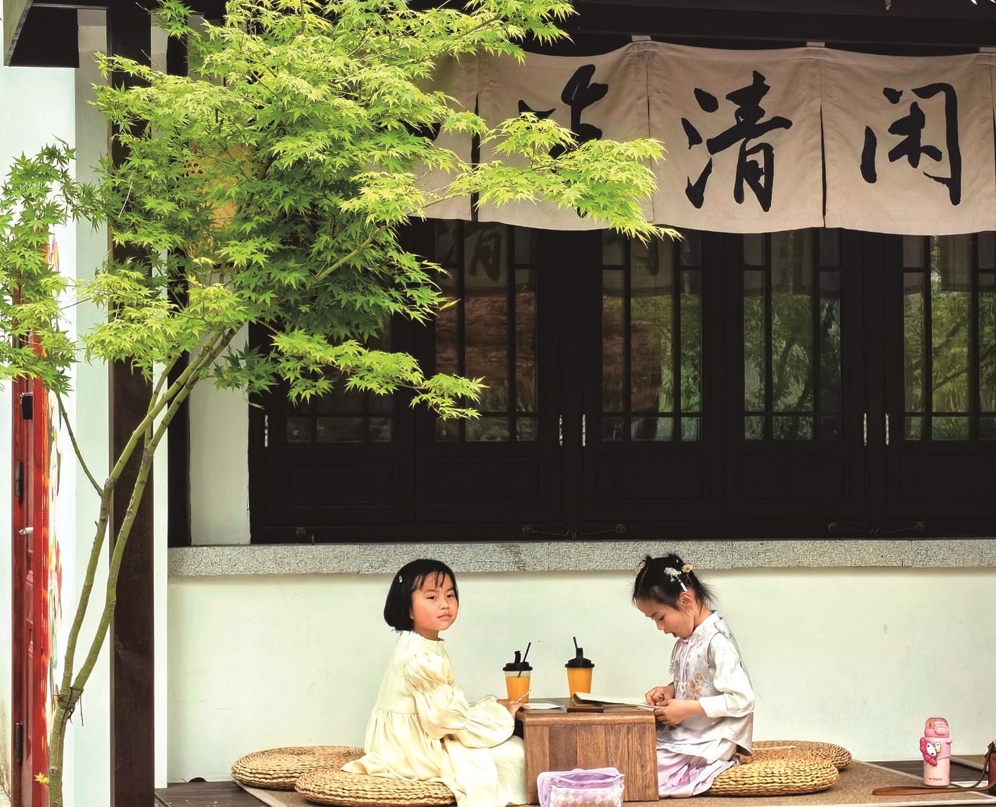 四月十四日,市区濠河边怡园里,两名小朋友乐享春日闲睱时光。瞿德均