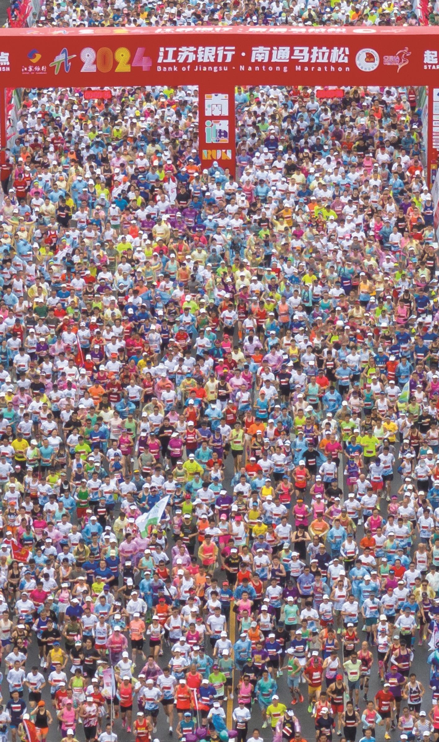 4月21日,2024南通马拉松,近2.5万名国内外跑友齐聚通城快乐奔跑。 许聪