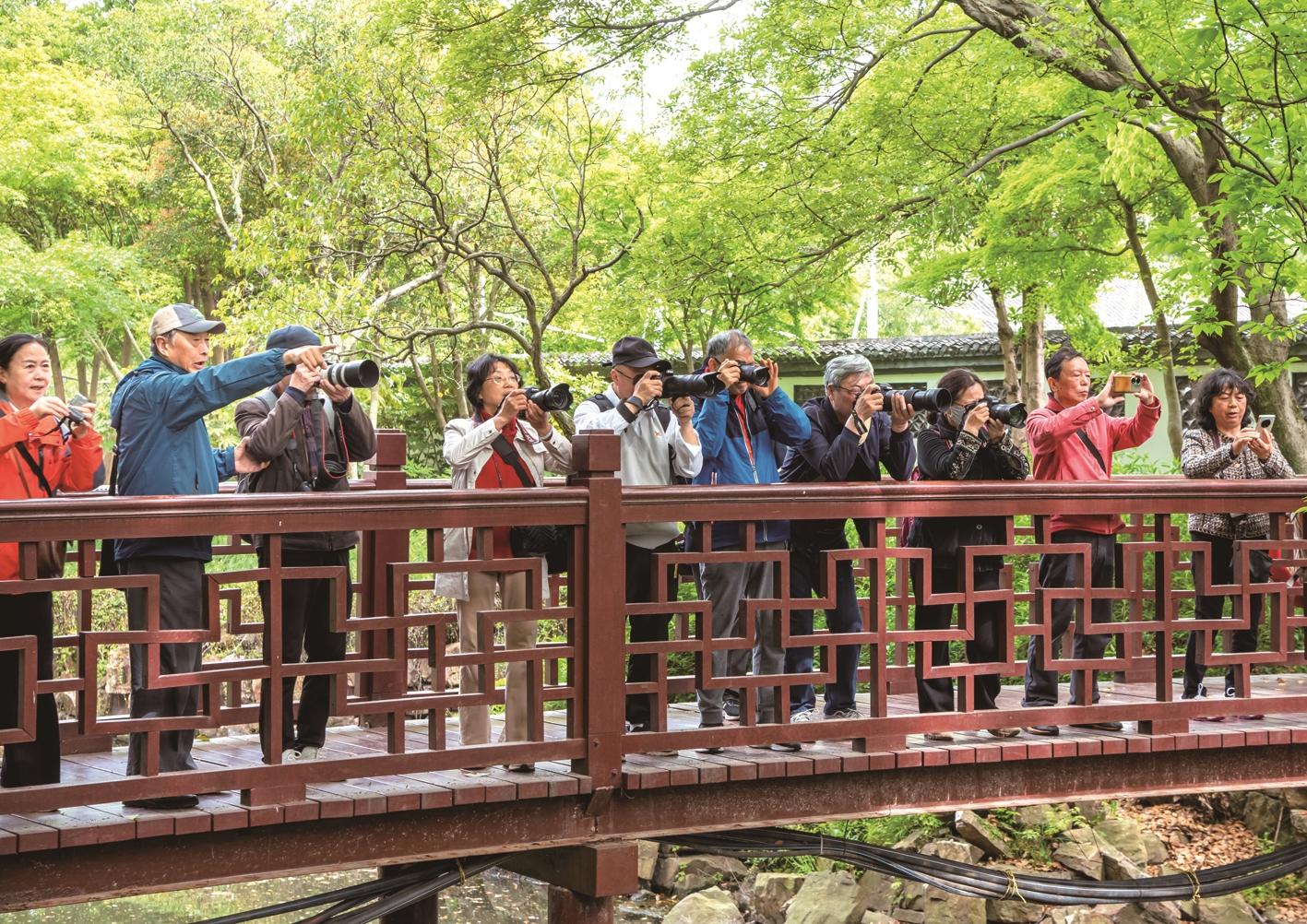 四月十九日,市老年大学摄影班学员在狼山景区上课。 黄平华