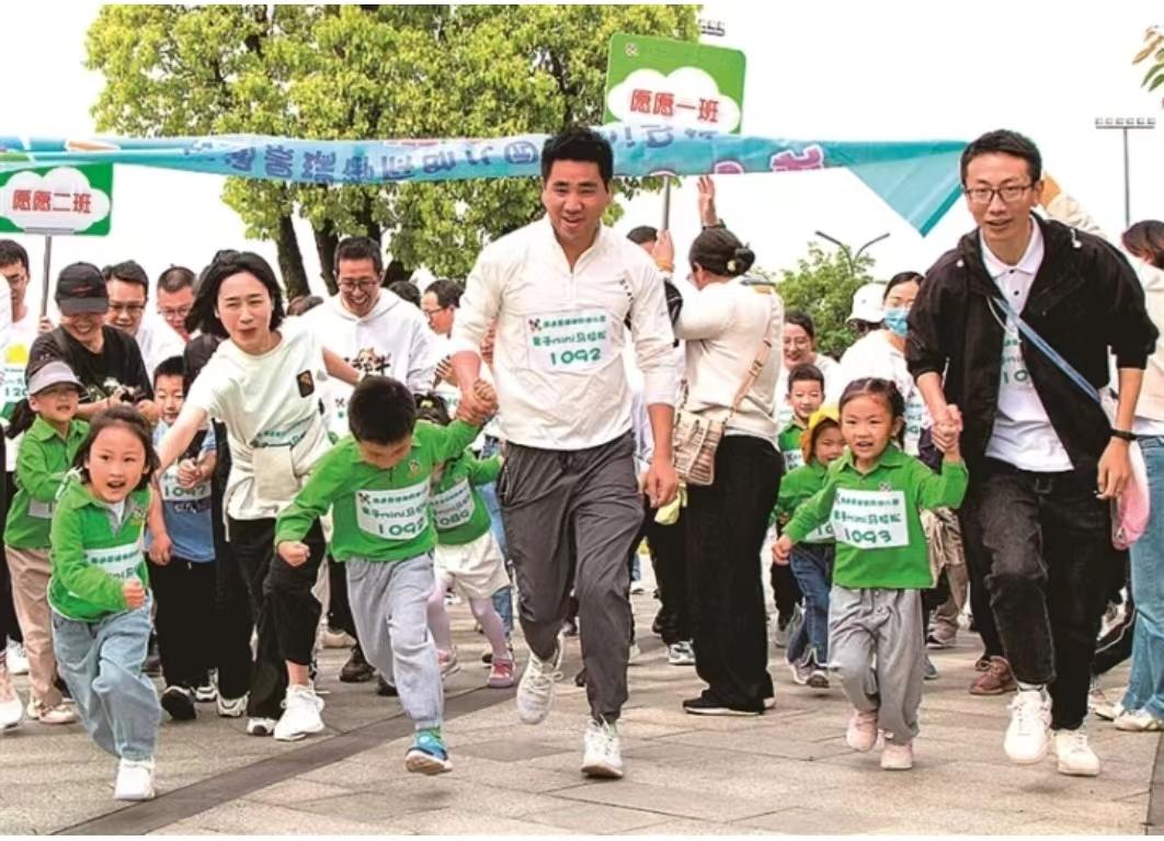 5月12日,南通开发区奇智宝贝景瑞御府幼儿园在紫琅湖畔举行亲子迷你马拉松运动会。钱咸华 王新芳