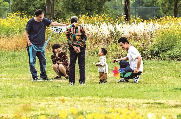 五月二十六日,南通经济技术开发区能达生态通廊,一家人带宝宝到户外游玩。 冯周鼎
