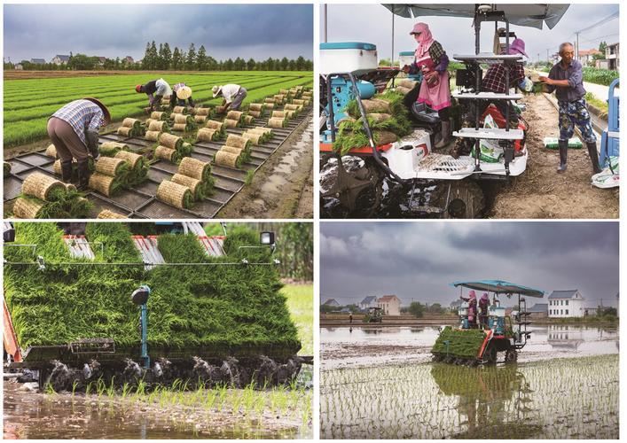6月12日,如东县掘港镇丁杨村水稻田开始插秧。村民在秧田里将秧苗起盘后小心卷起,随后这些秧块将运至插秧机进行插秧作业。 张跃勤