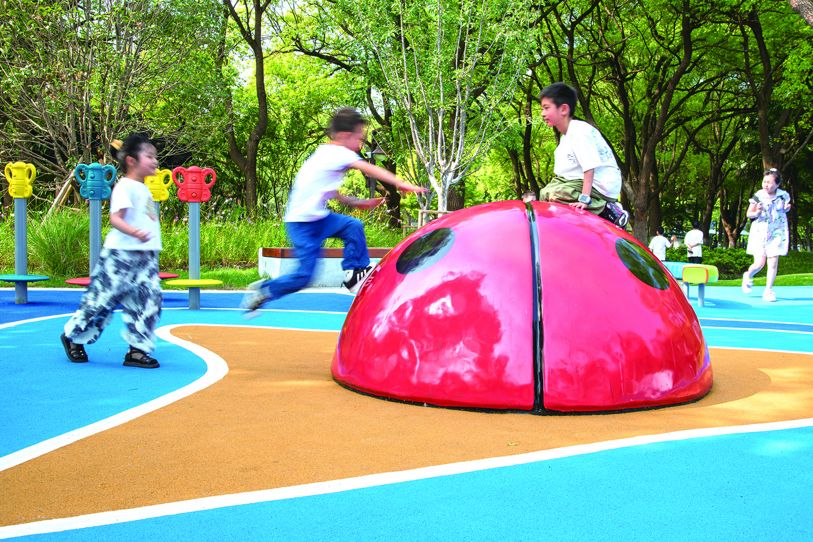 6月15日,市区文峰公园,孩子在园内快乐游戏。黄平华