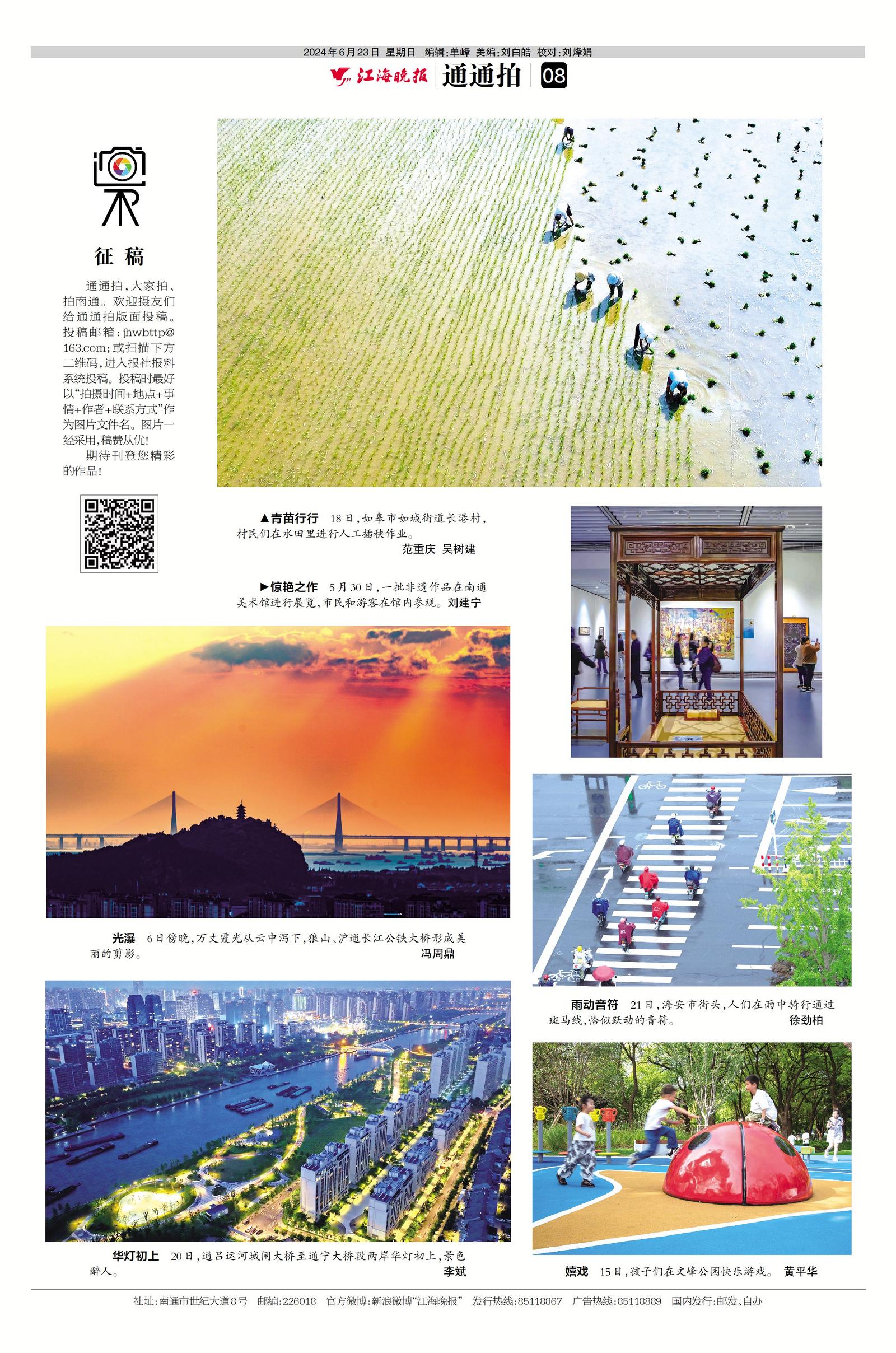 通通拍,大家拍、拍南通。欢迎摄友们给通通拍版面投稿。投稿邮箱:jhwbttp@163.com;或扫描下方二维码,进入报社报料系统投稿。投稿时最好以“拍摄时间+地点+事情+作者+联系方式”作为图片文件名。图片一经采用,稿费从优!
