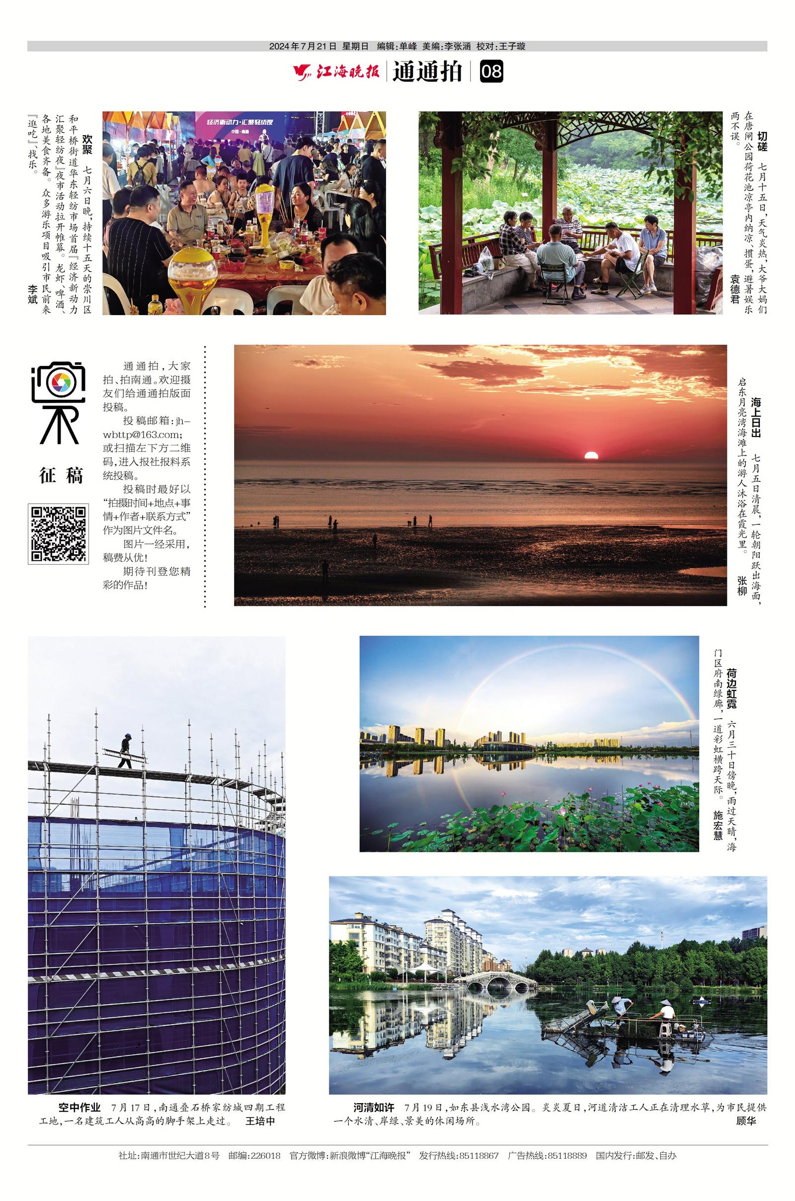 通通拍,大家拍、拍南通。欢迎摄友们给通通拍版面投稿。投稿邮箱:jhwbttp@163.com;或扫描下方二维码,进入报社报料系统投稿。投稿时最好以“拍摄时间+地点+事情+作者+联系方式”作为图片文件名。图片一经采用,稿费从优!